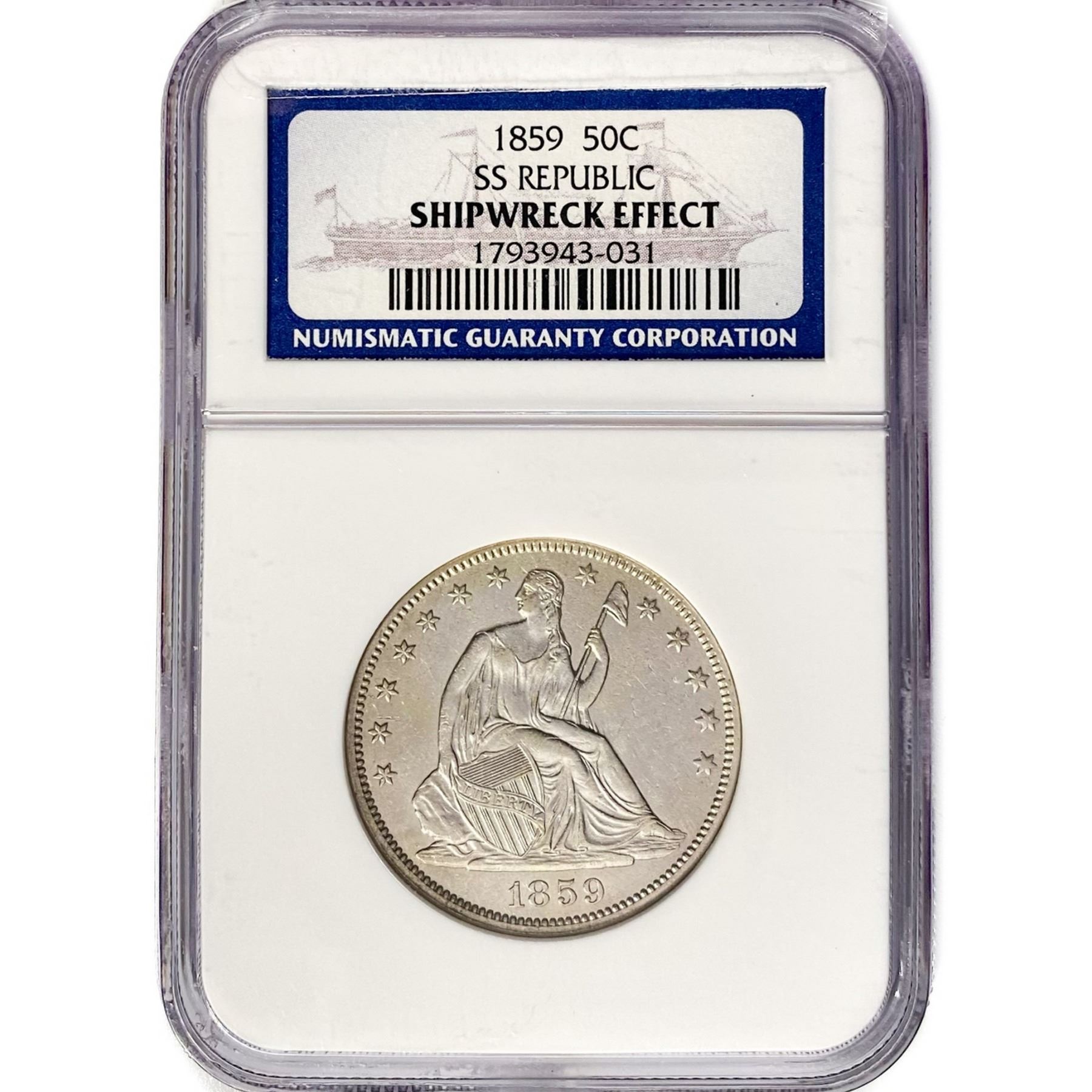 1859 Seated Lib. 50C NGC Shipwreck SS Rep Bx Set
