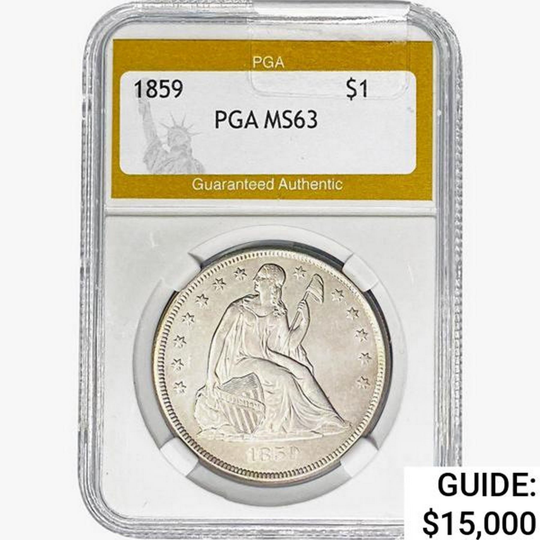 1859 Seated Liberty Dollar PGA MS63 WB