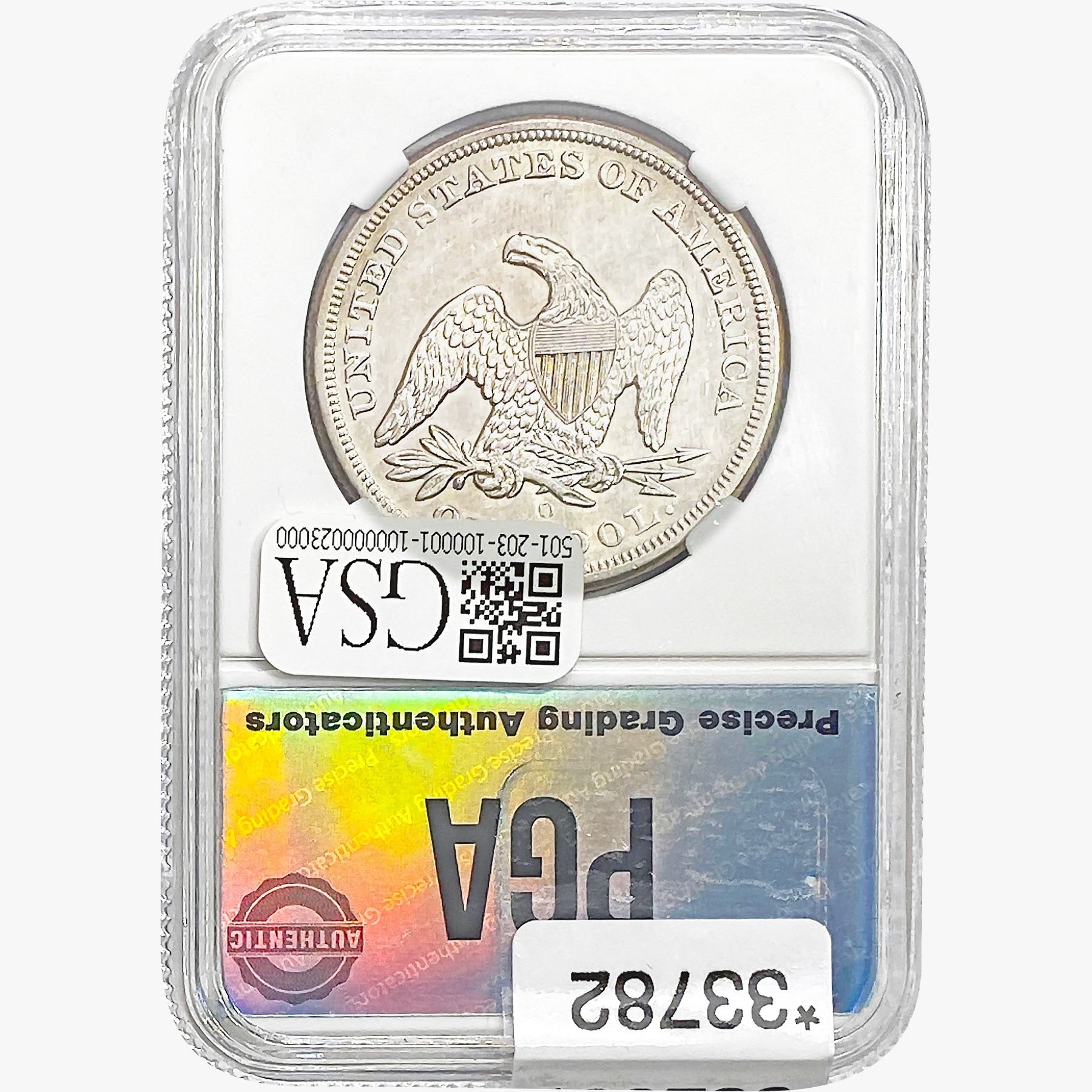 COINS AND CURRENCY LISTED IN GSA’S CATALOG AS GRADED AND ENCAPSULATED BY PCGS, NGC, ANACS, ICG, PCGS CURRENCY, PMG, PCGS BANKNOTE GRADING, CMC OR ANY OTHER THIRD-PARTY GRADING SERVICE ARE LIKEWISE SOLD “AS-IS” EXCEPT AS EXPRESSLY SET FORTH HEREIN. ALL THIRD-PARTY GRADING SERVICE GUARANTEES, INCLUDING AUTHENTICITY, ARE THE SOLE RESPONSIBILITY OF THE THIRD-PARTY GRADING SERVICE AND NOT WARRANTIES OR GUARANTEES OF GSA. BIDDERS SHOULD CONTACT THESE THIRD-PARTY GRADING SERVICES DIRECTLY WITH RESPECT TO ANY CLAIMS OR QUESTIONS THEY MAY HAVE CONCERNING THEIR GUARANTEES AND WARRANTIES. BIDDERS ACKNOWLEDGE AND AGREE THAT AUCTIONEER IS NOT BOUND BY OR LIABLE FOR ANY OPINION OR CERTIFICATION BY ANY THIRD-PARTY GRADING SERVICE. REMOVAL OF A PRODUCT FROM ITS PROTECTIVE CASING OR HOLDER OR ALTERATION OF ANY COIN HOLDER WAIVES ALL RIGHTS CONCERNING THE PRODUCT CONTAINED THEREIN.