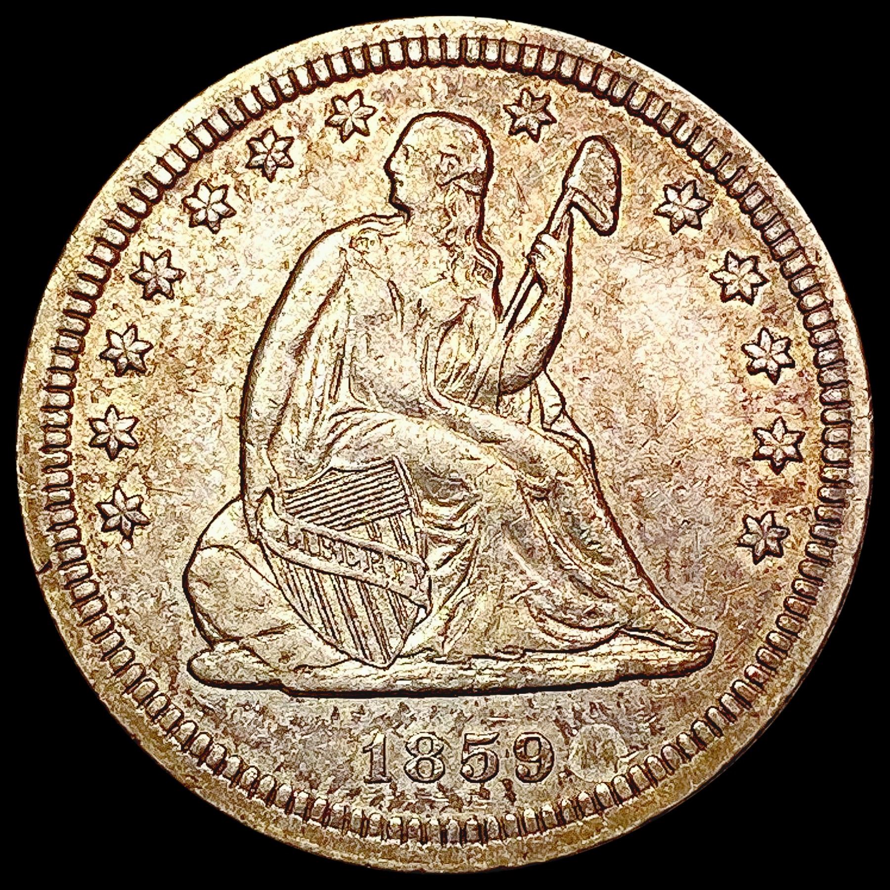 1859 Seated Liberty Quarter NEARLY UNCIRCULATED