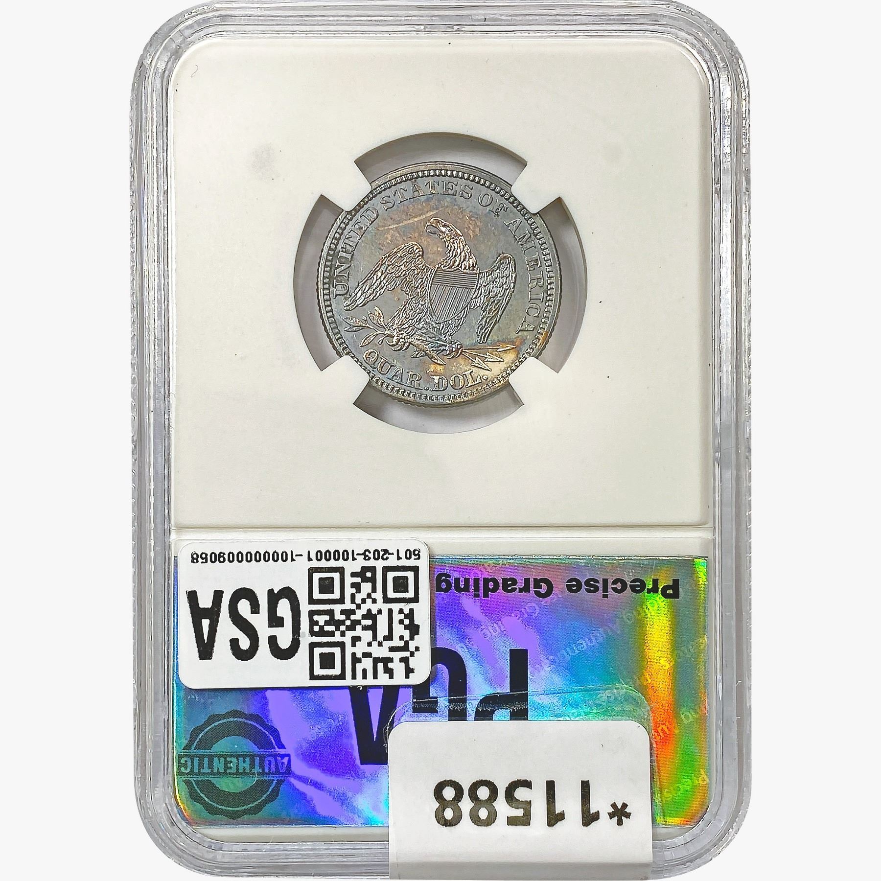 e. Coins sold referencing a third-party grading service are sold “AS IS” without any express or implied warranty, except for a guarantee by GSA that they are genuine. Removal or alteration of the holder, voids all of Bidder’s claims concerning that Product. Certain warranties may be available from the grading services and Bidders are referred to them for further details: Numismatic Guaranty Corporation (NGC), PO Box 4776, Sarasota, FL 34230, www.ngccoin.com/services/writtenguarantee.asp; Professional Coin Grading Services (PCGS), PO Box 9458, Newport Beach, CA 92658, www.pcgs.com/guarantee.html; ANACS, 6555 S. Kenton St., Ste. 303, Englewood, CO 80111; and Independent Coin Grading Co. (ICG), 7901 East Bellview, Ave., Suite 50, Englewood, CO 80111.
