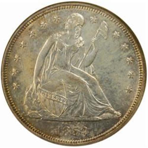 <style type="text/css"> body, td, th { font-family: Arial, Helvetica, sans-serif; font-size: 12px; color: #482424; margin: 0px; padding: 0px; } #header { background-image: url(http://www.bowersandmerena.com/ebay/images/template_v3_01.gif); clear: both; background-color: #590303; border-top-width: 2px; border-top-style: solid; border-top-color: #B38C4F;}#header #header_wrapper { height: 75px; clear: both; width: 800px; margin-right: auto; margin-left: auto; background-image: url(http://www.bowersandmerena.com/ebay/images/template_v3_03.gif); background-repeat: no-repeat; background-position: right; color: #F3EDCC;}#header #header_wrapper #header_logo { float: left; height: 75px; width: 444px; background-image: url(http://www.bowersandmerena.com/ebay/images/template_v3_02.gif); background-repeat: no-repeat; font-size: 10px; text-transform: capitalize; color: #B38C4F;}#header #header_wrapper #header_right { float: left; height: 75px; width: 356px; text-align: right;}#header #header_wrapper #header_right #headerLoginBtn { margin-bottom: 30px;}#header #header_wrapper #header_right input#txtSearch { color: #B49056; border: 1px solid #B49056; width: 175px; padding-top: 3px; padding-right: 3px; padding-bottom: 4px; padding-left: 3px;}#nav { height: 37px; background-image: url(http://www.bowersandmerena.com/ebay/images/template_v3_05.gif); clear: both;}#nav #nav_wrapper { height: 35px; width: 800px; margin-right: auto; margin-left: auto; border-left-width: 1px; border-left-style: solid; border-left-color: #B38C4F;}#nav #nav_wrapper a { padding-right: 15px; padding-left: 15px; border-right-width: 1px; border-right-style: solid; border-right-color: #B38C4F; height: 25px; padding-top: 10px; display: block; float: left; text-decoration: none; font-weight: bold; color: #5D0303;}#nav #nav_wrapper a:hover { color: #B38C4F;}#nav #nav_wrapper #search { float: right; padding-top: 7px;}#nav #nav_wrapper #search #txtSearch { font-family: Arial, Helvetica, sans-serif; font-size: 10px; text-transform: uppercase; color: #D2AE75; border: 1px solid #B38C4F; padding: 3px;}#content_bgd { background-image: url(http://www.bowersandmerena.com/ebay/images/template_v3_09.gif); background-repeat: repeat-y; background-position: center; padding-top: 15px; padding-bottom: 15px; background-color: #FBFBDB;}#content_wrapper { clear: both; height: auto; width: 800px; margin-right: auto; margin-left: auto;}.LotDetailWhite{ line-height:normal; font-size:13px; font-family: arial,helvetica,sans-serif; color: White; font-weight: bold;}.LotDetailInformation{ line-height:normal; font-size: 13px; font-family: arial,helvetica,sans-serif;}.LotDetailMessage{ line-height:normal; font-size: 13px; font-family: arial,helvetica,sans-serif; color: red;}}tr.HeaderAuctionTitle td { color: #000000; font-weight: bold; padding: 2px; background-image: url(http://www.bowersandmerena.com/ebay/images/template_v3_05.gif); background-repeat: repeat-x; border-bottom-width: 1px; border-bottom-style: solid; border-bottom-color: #B38C4F;}table.AuctionSummary a, table.AuctionSummary a:link, table.AuctionSummary a:visited { color: #0000FF; text-decoration: none;}}td.tableHeaderLeft { border-left-width: 1px; border-left-style: solid; border-left-color: #B38C4F;}td.tableHeaderRight { border-right-width: 1px; border-right-style: solid; border-right-color: #B38C4F;}td.tableCellMiddle { border-left-width: 1px; border-left-style: solid; border-left-color: #B38C4F; border-right-width: 1px; border-right-style: solid; border-right-color: #B38C4F; padding: 5px;}tr.footer td { border-top-width: 1px; border-top-style: solid; border-top-color: #B38C4F;}</style></head><body><div id="header"> <div id="header_wrapper"> <div id="header_logo"> </div> <div id="header_right"> </div> </div></div><div id="nav"> <div id="nav_wrapper"> <a href="http://www.bowersandmerena.com">Our eBayLive Auctions</a> <a href="#PaymentInfo">Payment Information</a> <a href="#ShippingInfo">Shipping Information</a> <a href="#About">About Bowers and Merena</a> </div></div><div id="content_bgd"> <div id="content_wrapper"> <table width="100%" border="0" cellpadding="5" cellspacing="0" class="AuctionSummary"> <tbody> <tr class="HeaderAuctionTitle" style="height: 25px;"> <td align="left" class="tableHeaderLeft" > </td> <td align="center" class="tableHeaderRight"> <span style="font-size: large;">Lot #725. 1859 Seated Liberty Silver Dollar. MS-64 (NGC). CAC.</span> </td> </tr> <tr> <td colspan="3" class="tableCellMiddle"> The 1859 is one of the most underrated issues in the entire Seated Dollar series of 1840-1873. This is certainly saying a lot since virtually all issues in that series are much rarer in even the lowest Mint State grades than most collectors realize. The 1859 started out with a relatively plentiful mintage of 255,700 business strikes. Most examples were exported, however, and the handful of pieces that were either repatriated in later years or managed to remain in the United States since 1859 are typically encountered with varying degrees of wear. Very, very few coins were fortunate enough to be set aside at the time of issue and subsequently survive the passage of time in full Mint State.This premium MS-64 represents the finest in technical quality that is realistically obtainable in an example of this rare, conditionally challenging issue. Satiny in sheen, and possessed of modest hints of reflectivity in the fields, the surfaces are veiled in mostly pale-silver tinting. There are more vivid highlights of pinkish-apricot iridescence present around the rims, particularly on the left side of the obverse. Well struck with only a few trivial abrasions, this coin comes highly recommended for inclusion in the finest Seated Dollar set.