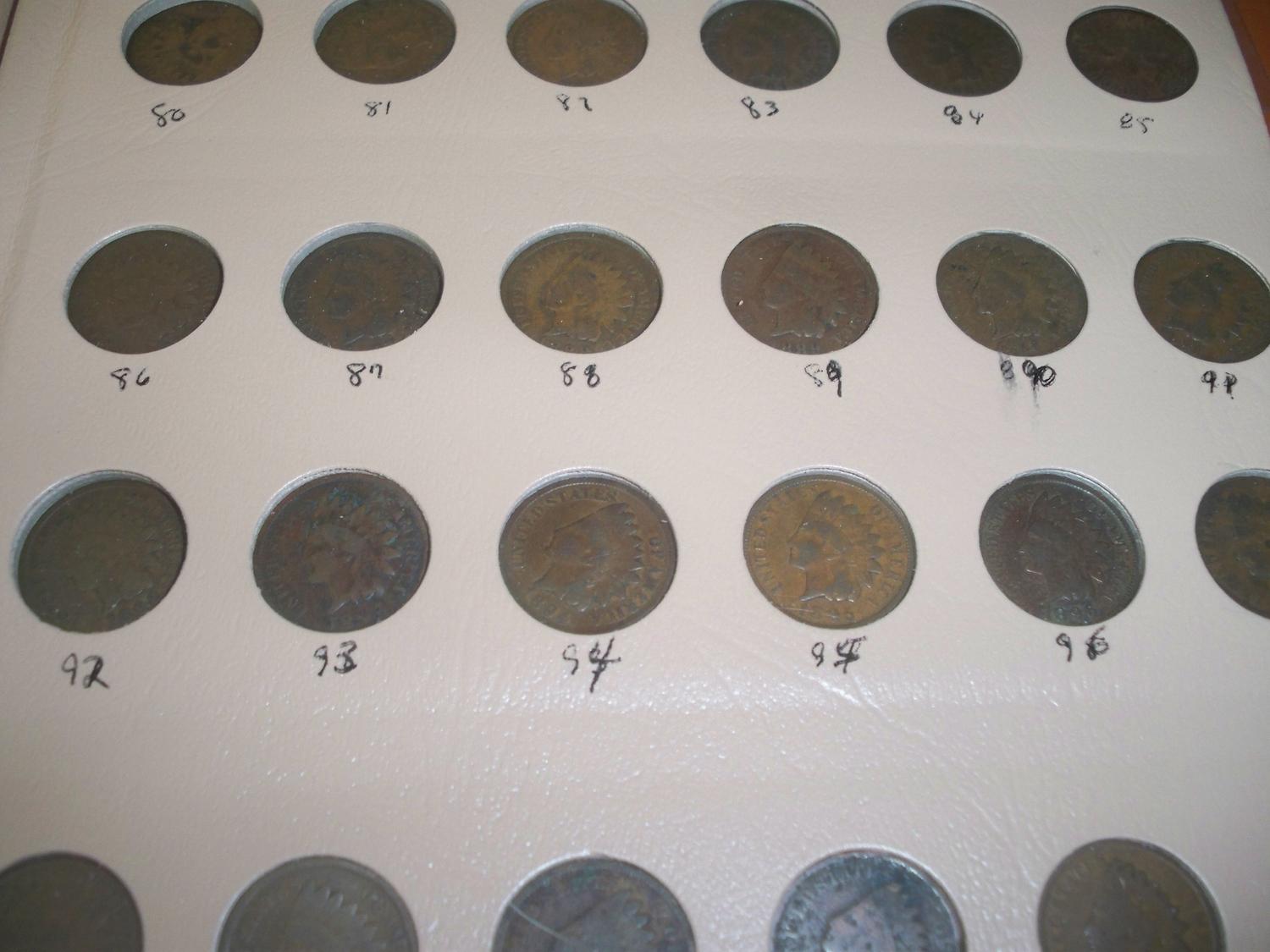 1859 TO 1909 COMPLETE SET INDIAN HEAD PENNIES INCLUDING 1877 WHICH HAS A BOOK VALUE ALONE OF $900 STARTING GRADE G