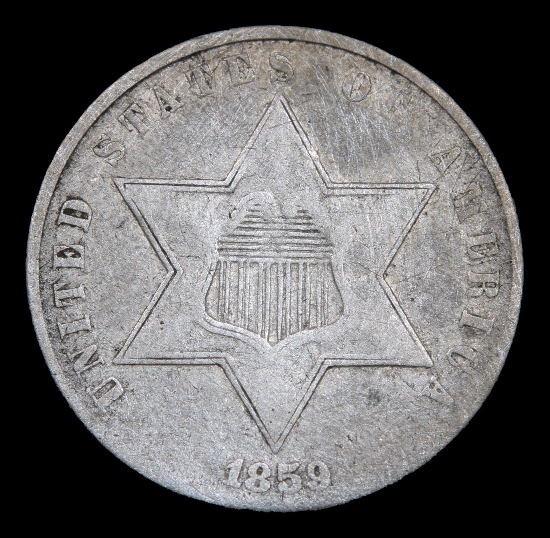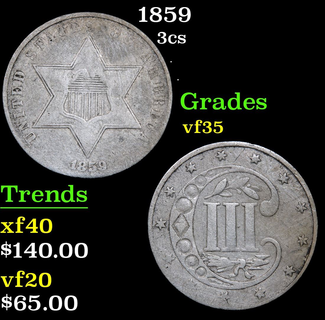 1859 . . Three Cent Silver 3cs Grades vf++.