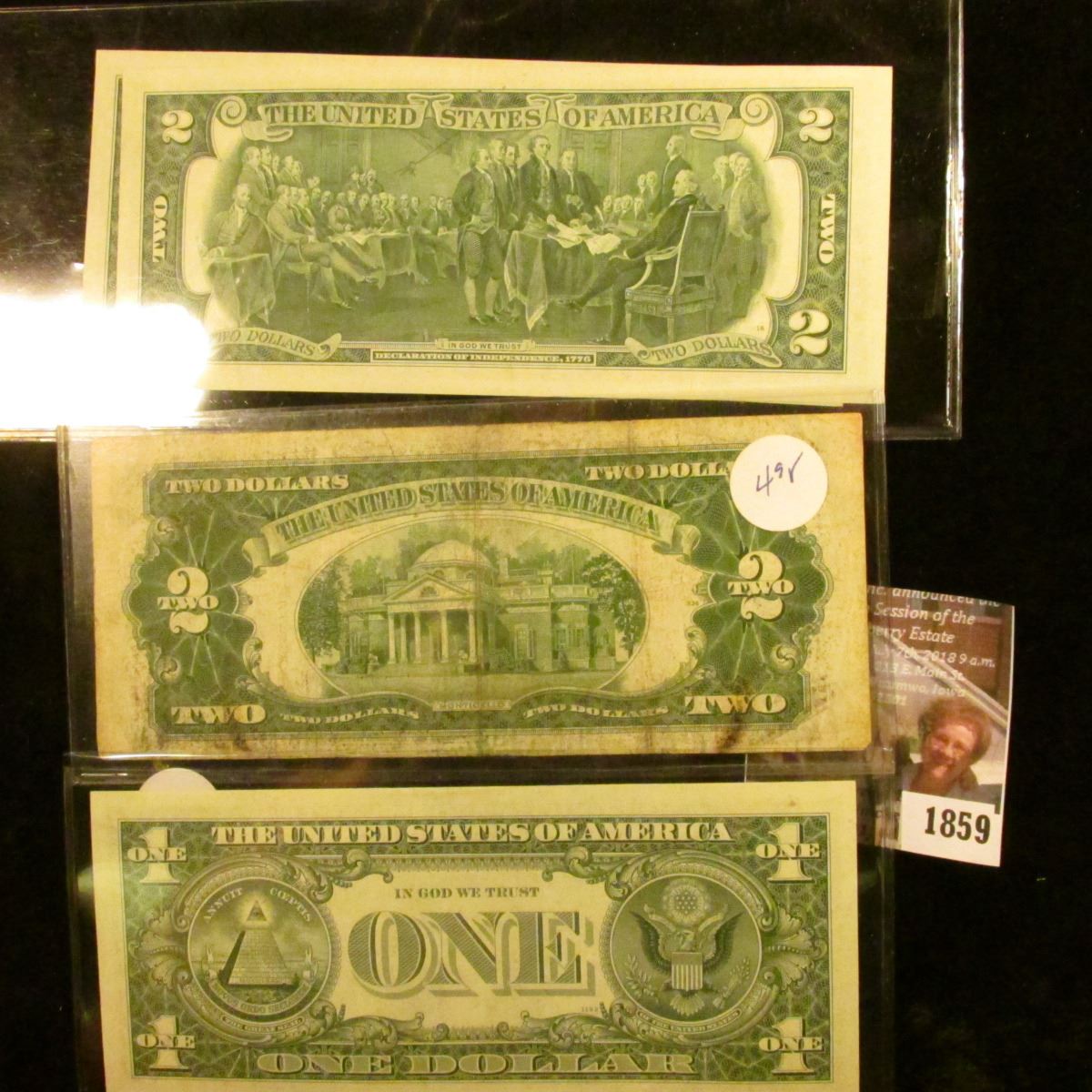 1859 . Two Crisp and Consecutive Two Dollar Star Notes Series 1976,