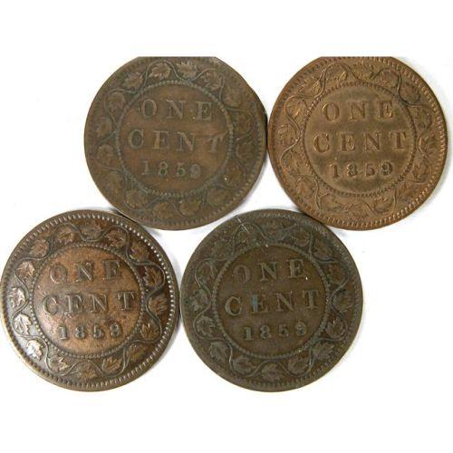 1859 Wide 9 Over 8. Four pieces, VG to EF, and either cleaned or scratched