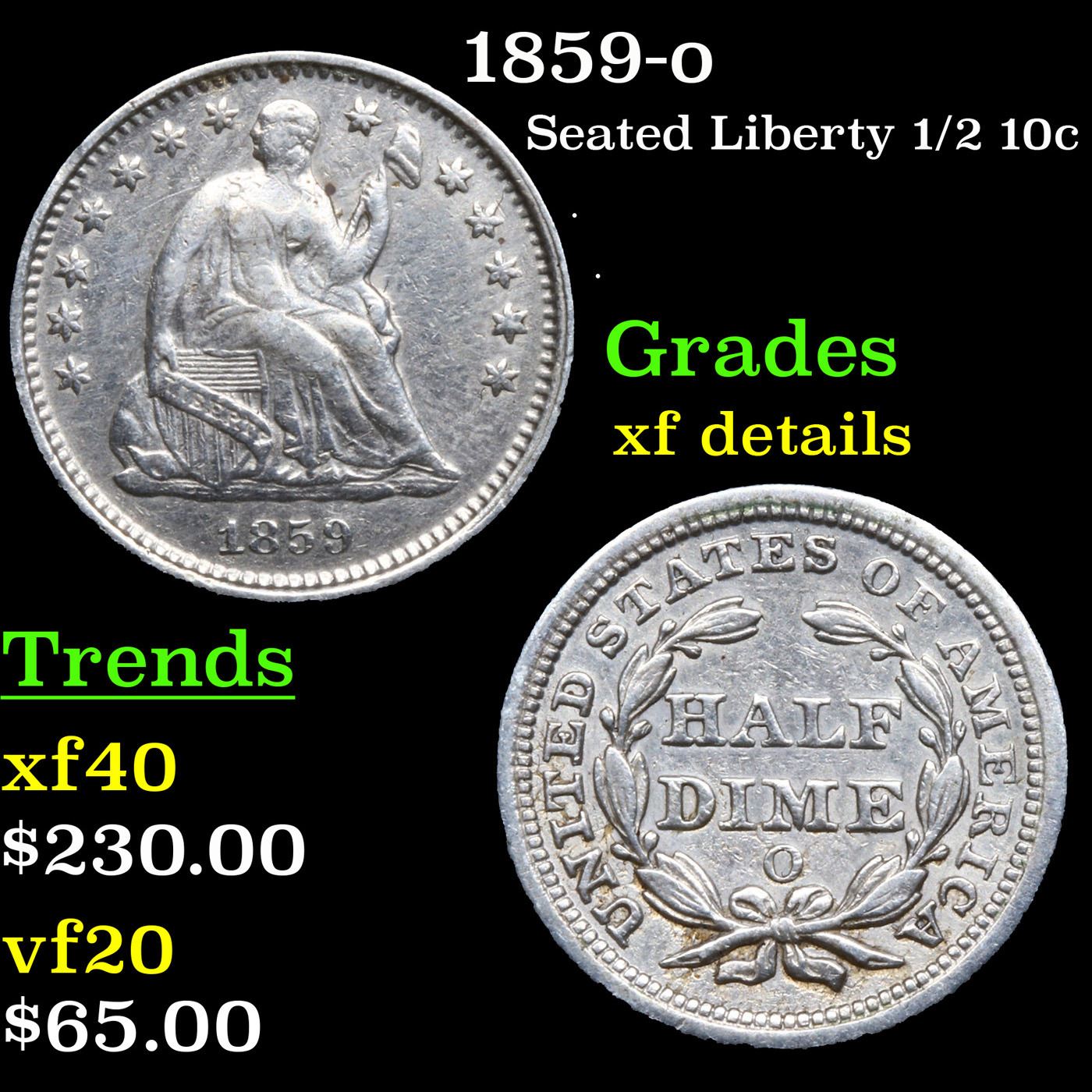 1859-o Seated Liberty Half Dime 1/2 10c Grades xf details.