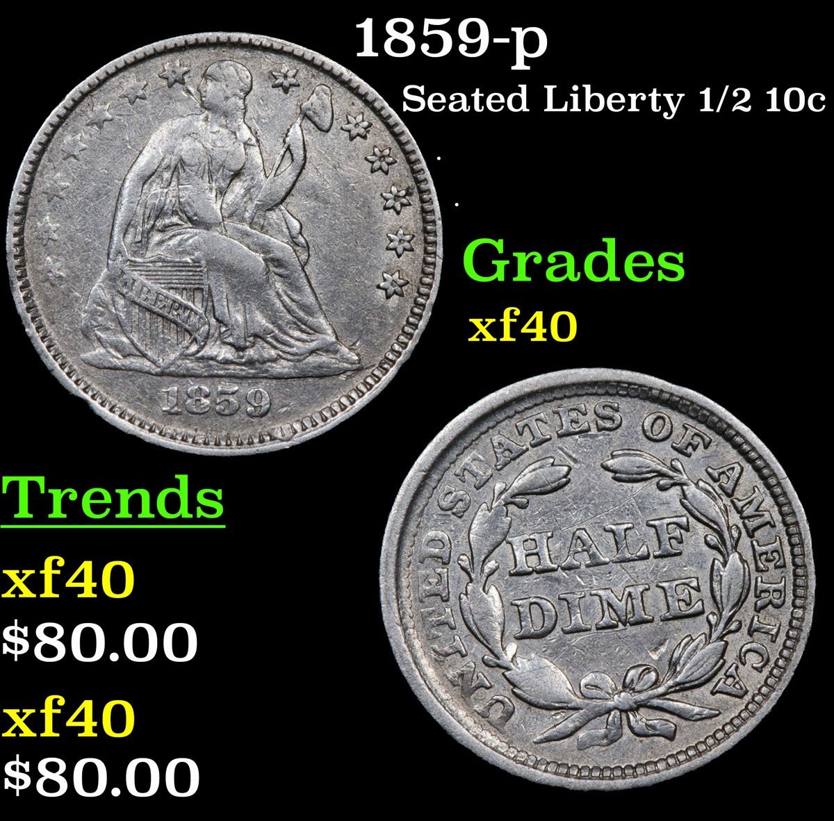 1859-p Seated Liberty Half Dime 1/2 10c Grades xf.