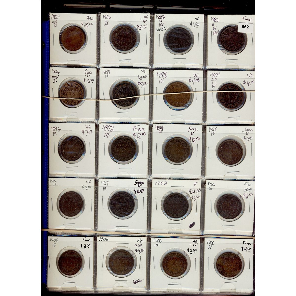 1859 to 1999 1¢ Lot. Includes Victorian(14), Edw((8), Geo V(9) Lg, Geo V(4) Sml including 1925 & 1926. 168 coins in all VG to UNC/PL.