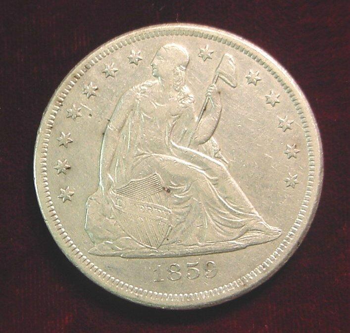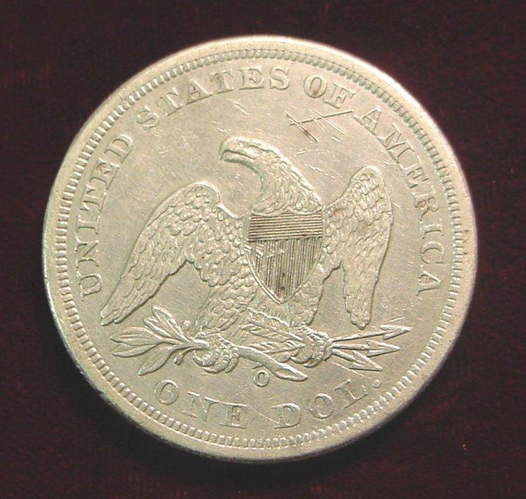 1859O Liberty Seated Dollar. VF. Scr. In Rev. Field.