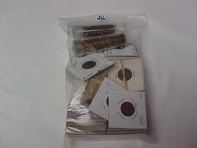 186 Canadian Cents, most in 2x2 circ: 1920, 28, 29; 17 (30-39, 10 dates), 11 (40-49, 10 dt), 16 (50-59, 11 dt), 16 (60-69, 10 dt), 10 (70-79, 7 dt), 5 (80-89, 4 dt), 3 (90-99, 3 dt), 2000, 2 Tubes (54 marked up to 1952, 50 marked 1953 & newer)