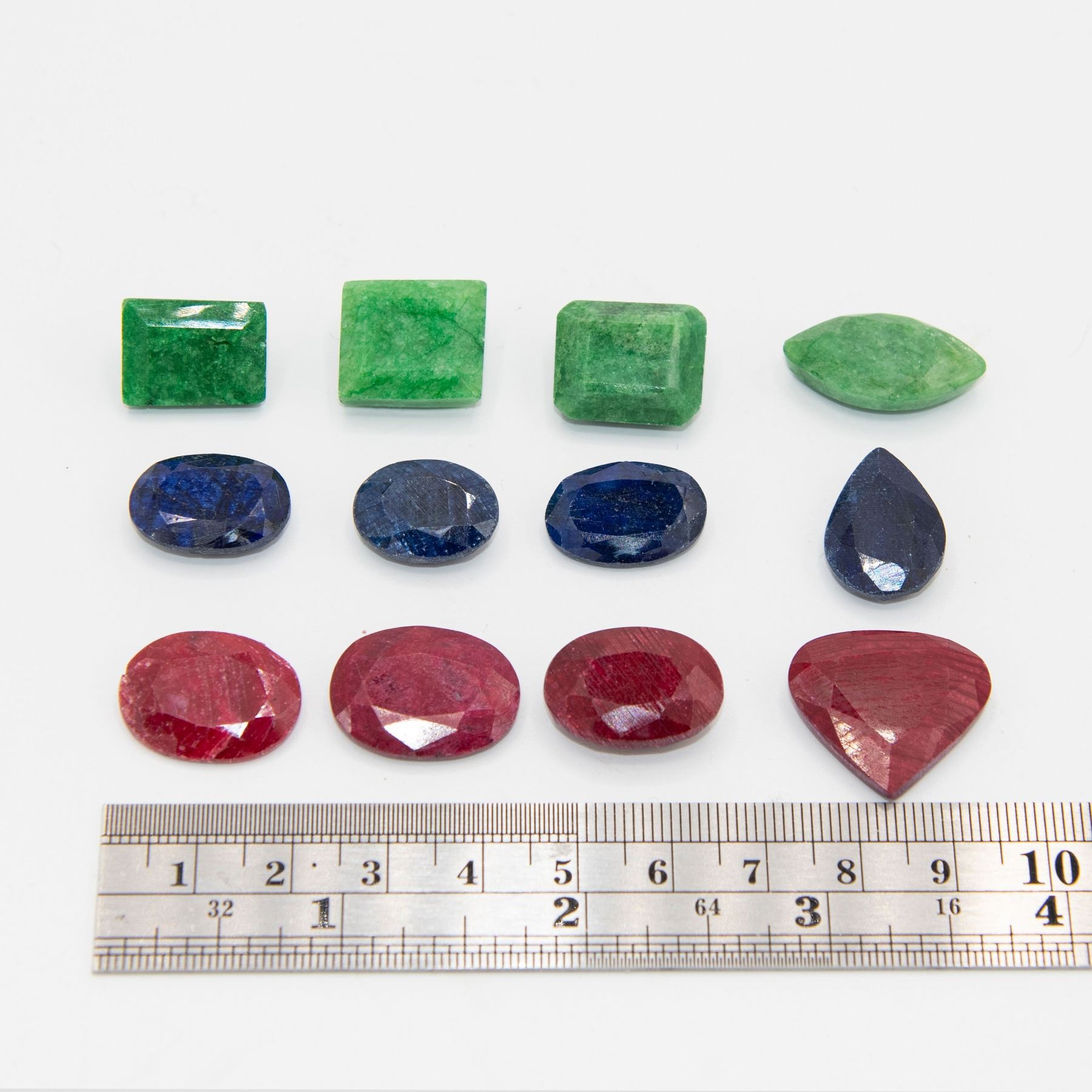 186 Cttw Parcel Of Emeralds, Rubies & Blue Sapphires