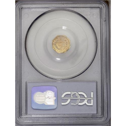 <B>1860 $1 Liberty Octagonal 1 Dollar, BG-1102, R.4, AU58 PCGS.</B></I> Delicate powder-blue and plum tints overlie this glossy and smooth small denomination gold piece. Minor bluntness of strike is seen on the hair bun and the lower right portion of the wreath.