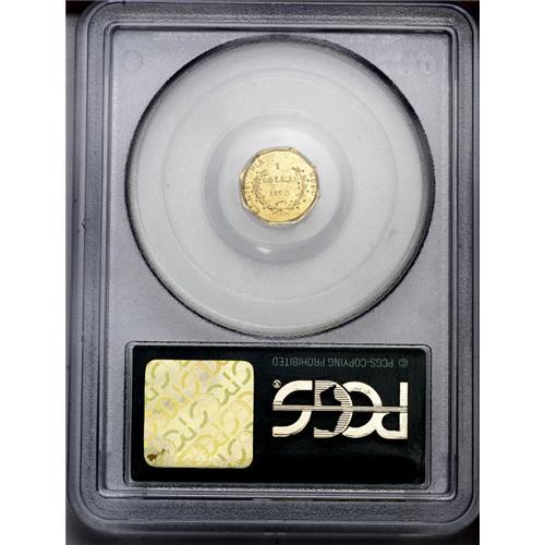 <B>1860<$1> Liberty Octagonal 1 Dollar, BG-1102, R.4, MS64 PCGS.</B></I> A moderately reflective and exquisitely struck octagonal dollar. The radiant yellow-gold fields display no detectable marks. Housed in a green label holder.<BR><I>Ex: Bowers and Merena, 1/95, lot 3230.</B></I>