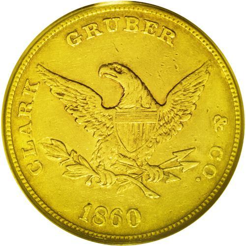 1860 $10 Clark, Gruber & Co. Ten Dollar AU55 PCGS.