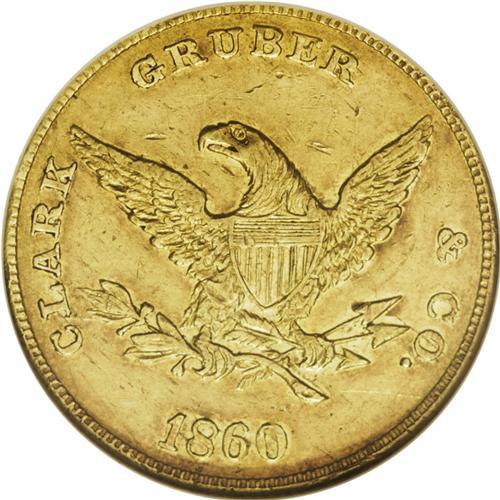 1860 $10 Clark, Gruber & Co. Ten Dollar MS60 NGC. K-3,