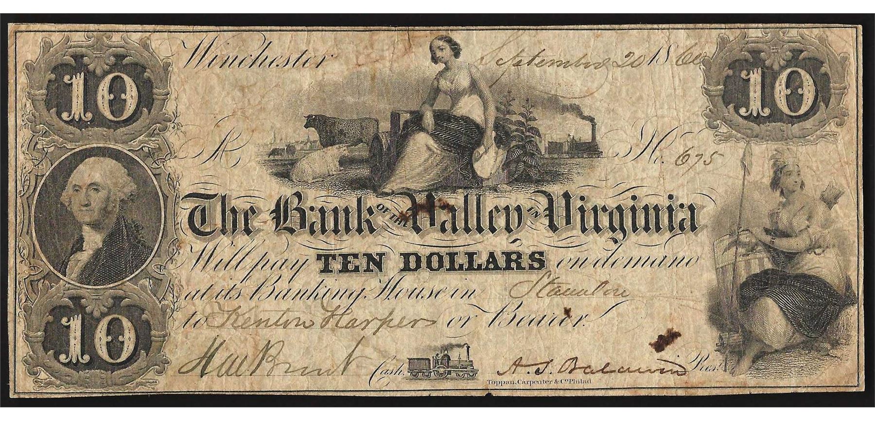 One 1860 $10 The Bank of the Valley in Virginia Obsolete Note.