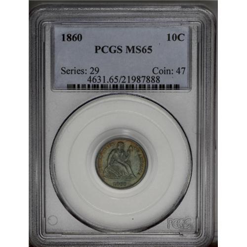 1860 10C MS65 PCGS. An exciting Gem with sharply defin 1860[10C] MS65 PCGS.