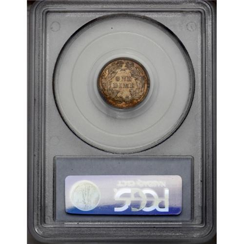 <B>1860<10C> MS65 PCGS.</B></I> An exciting Gem with sharply defined obverse and reverse details visible beneath intense toning. The obverse has deep gold and vivid green color while the reverse has light gold toning and prooflike fields. Population: 12 in 65, 8 finer (3/06).