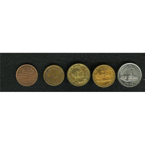 <B>(1860-1870) Group Lot of Miscellaneous Tokens.</B></I> Includes: <B>John Stilz & Son, Pa Ph-760; Partridge & Richardson, Pa 382, Uncirculated; E. Lyon, NY 511, AU; Chars Treusch, Md-Ba 97, VF;</B></I> and <B>William Idler, Pa-230d, Uncirculated.</B></I> A nice group. Viewing is recommended.