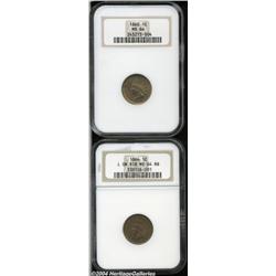 <table><tr><td><TABLE cellSpacing=0 cellPadding=0 width="100%" bgColor=#000000 border=0><TBODY> <TR><TD width="100%"><TABLE cellSpacing=1 cellPadding=3 width="100%" border=0><TBODY><TR><TD width="100%" bgColor=#79735c><FONT face=arial color=#ffffff size=3><B>Description</B> </FONT></TD></TR><TR><TD width="100%" bgColor=#ffffff><FONT face=arial size=2><B>1860 1C MS64 NGC,</B></I> a satiny light tan-brown near-Gem, well preserved aside from a wispy pinscratch on the upper cheek; and an <B>1864 L on Ribbon MS64 Red and Brown NGC,</B></I> intermingled tan and lilac color, seemingly free from contact but the upper obverse and lower reverse are not fully struck, slightly rotated dies. (2 coins) </FONT></TD></TR></TBODY></TABLE></TD></TR></TBODY></TABLE><BR><A name=PricesRealized></A><TABLE cellSpacing=0 cellPadding=0 width="100%" bgColor=#000000 border=0><TBODY><TR><TD width="100%"><TABLE cellSpacing=1 cellPadding=3 width="100%" border=0><TBODY><TR><TD width="100%" bgColor=#79735c><A name=PR><FONT face=arial color=#ffffff size=3><B>Previous Prices from Heritage Auctions</B> </FONT></A></TD></TR><TR><TD bgColor=#f6f6ed><TABLE cellSpacing=0 cellPadding=0 width="100%" border=1><TBODY><TR><TD align=middle width="33%"><B>Date</B></TD><TD align=middle width="33%"><B>Service</B></TD><TD align=middle width="33%"><B>Price</B></TD></TR><TR bgColor=whitesmoke><TD width="33%"><B>09/17/2002</B></TD><TD width="33%">NGC</TD><TD width="33%">$247.25</TD></TR><TR bgColor=whitesmoke><TD width="33%"><B>10/03/2000</B></TD><TD width="33%">NGC</TD><TD width="33%">$190.00</TD></TR><TR bgColor=whitesmoke><TD width="33%"><B>11/07/2003</B></TD><TD width="33%">PCGS</TD><TD width="33%">$373.75</TD></TR><TR bgColor=whitesmoke><TD width="33%"><B>09/22/2003</B></TD><TD width="33%">NGC</TD><TD width="33%">$281.75</TD></TR><TR bgColor=whitesmoke><TD width="33%"><B>08/06/2003</B></TD><TD width="33%">ANACS</TD><TD width="33%">$253.00</TD></TR><TR bgColor=whitesmoke><TD width="33%"><B>05/05/2003</B></TD><TD width="33%">PCGS</TD><TD width="33%">$345.00</TD></TR><TR bgColor=whitesmoke><TD width="33%"><B>03/23/2003</B></TD><TD width="33%">NGC</TD><TD width="33%">$299.00</TD></TR><TR bgColor=whitesmoke><TD width="33%"><B>09/30/2002</B></TD><TD width="33%">PCGS</TD><TD width="33%">$322.00</TD></TR><TR bgColor=whitesmoke><TD width="33%"><B>07/29/2002</B></TD><TD width="33%">PCGS</TD><TD width="33%">$299.00</TD></TR><TR bgColor=whitesmoke><TD width="33%"><B>04/28/2002</B></TD><TD width="33%">ANACS</TD><TD width="33%">$1,006.25</TD></TR><TR bgColor=whitesmoke><TD width="33%"><B>02/24/2002</B></TD><TD width="33%">ANACS</TD><TD width="33%">$368.00</TD></TR><TR bgColor=whitesmoke><TD width="33%"><B>11/15/2001</B></TD><TD width="33%">PCGS</TD><TD width="33%">$235.75</TD></TR><TR bgColor=whitesmoke><TD width="33%"><B>06/02/2001</B></TD><TD width="33%">PCGS</TD><TD width="33%">$241.50</TD></TR><TR bgColor=whitesmoke><TD width="33%"><B>01/05/2001</B></TD><TD width="33%">NGC</TD><TD width="33%">$258.75</TD></TR><TR bgColor=whitesmoke><TD width="33%"><B>05/05/2000</B></TD><TD width="33%">PCGS</TD><TD width="33%">$310.50</TD></TR><TR bgColor=whitesmoke><TD width="33%"><B>09/23/1998</B></TD><TD width="33%">NGC</TD><TD width="33%">$165.00</TD></TR><TR bgColor=whitesmoke><TD width="33%"><B>08/08/1998</B></TD><TD width="33%">NGC</TD><TD width="33%">$286.00</TD></TR><TR bgColor=whitesmoke><TD width="33%"><B>08/17/1996</B></TD><TD width="33%">NGC</TD><TD width="33%">$440.00</TD></TR><TR bgColor=whitesmoke><TD width="33%"><B>02/02/1996</B></TD><TD width="33%">PCGS</TD><TD width="33%">$121.00</TD></TR><TR bgColor=whitesmoke><TD width="33%"><B>12/09/1994</B></TD><TD width="33%">NGC</TD><TD width="33%">$187.00</TD></TR><TR bgColor=whitesmoke><TD width="33%"><B>04/02/1993</B></TD><TD width="33%">PCGS</TD><TD width="33%">$297.00</TD></TR><TR bgColor=whitesmoke><TD width="33%"><B>05/01/1998</B></TD><TD width="33%">NGC</TD><TD width="33%">$264.00</TD></TR></TBODY></TABLE></TD></TR><TR><TD bgColor=#ffffff><FONT face=arial size=1 ?>PLEASE NOTE: All prices realized reflect the final hammer price PLUS the buyer's premium in auctions that charge a buyer's premium. Each item has a notation at the top of the listing indicating whether that lot included a buyer's premium. Example: A item that sells with a final hammer price of $100 and a 20% buyer's premium will display with a price realized of $120. All information listed is intended to be as accurate as possible, but errors are possible. Please use this guide carefully and inform us of any inaccuracies. </FONT></TD></TR></TBODY></TABLE></TD></TR></TBODY></TABLE><BR><TABLE cellSpacing=0 cellPadding=0 width="100%" bgColor=#000000 border=0><TBODY><TR><TD width="100%"><TABLE cellSpacing=1 cellPadding=3 width="100%" border=0><TBODY><TR><TD width="100%" bgColor=#79735c colSpan=6><FONT face=arial color=#ffffff size=3><B>Price Guide*</B> </FONT></TD></TR><TR bgColor=#f6f6ed><TD align=middle><B>Grade</B> </TD><TD align=middle><B>Coin World<BR>(Trends)</B> </TD><TD align=middle><B>Numismedia<BR>Retail</B> </TD><TD align=middle><B>Numismedia<BR>Wholesale</B> </TD><TD align=middle><B>Coin<BR>Universe</B> </TD><TD align=middle><B>Heritage<BR>Value Index</B> </TD></TR><TR><TD colSpan=6>No Pricing Data Available</TD></TR><TR bgColor=#ffffff><TD colSpan=6><FONT size=1>*All information listed is intended to be as accurate as possible, but errors are possible. No item may be returned or refused based on this information which is provided as a service to our customers. You should contact each pricing source directly to determine the accuracy of this information. </FONT></TD></TR></TBODY></TABLE></TD></TR></TBODY></TABLE><BR><TABLE cellSpacing=0 cellPadding=0 width="100%" bgColor=#000000 border=0><TBODY><TR><TD width="100%"><TABLE cellSpacing=1 cellPadding=3 width="100%" border=0><TBODY><TR><TD width="100%" bgColor=#79735c><FONT face=arial color=#ffffff size=3><B>Population Guide</B> </FONT></TD></TR><TR bgColor=#ffffff><TD align=middle