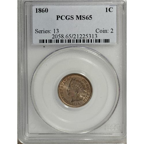 1860 1C MS65 PCGS. This highly lustrous almond-gold Ge