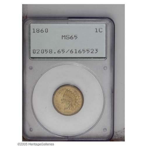 1860 1C MS65 PCGS. Well preserved with a partial layer 1860[1C] MS65 PCGS.