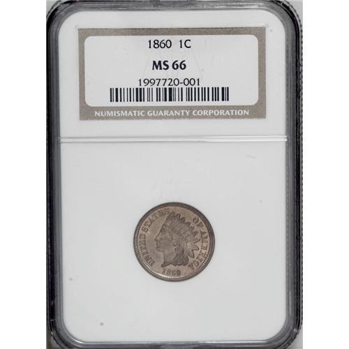 1860 1C MS66 NGC. A delightful carrot-tinged copper-or