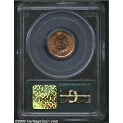 1860 1C MS66 PCGS. Commonly called the Type Two Obverse, the bust is on this hub type is broader. This change and the deeper sinking of the central head of the Indian in the hub were undoubtedly done to improve the striking details of the coins. Better struck on the reverse than the obverse, the surfaces have a pebbly finish and are highly lustrous. The copper-nickel alloy has taken on an attractive purplish patina on the obverse, while the reverse is a lovely reddish-brown. As one would expect from the grade, there are no obvious marks on either side. Population: 26 in 66, 7 finer (1/03).From the Colburn Collection. Important notice: We expect to be auctioning lots at the rate of 200-250 per hour. On occasion eBay live bid software cannot keep up with the pace of the auctions where 4-5 lots per minute can hammer down, so we recommend that you place a realistic absentee bid now as insurance to avoid disappointment. Also please note that all Heritage/CAA lots purchased through eBay Live carry a 20% Buyer's Premium. Please make sure you read the Terms and Conditions.