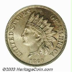 <table><tr><td><TABLE cellSpacing=0 cellPadding=0 width="100%" bgColor=#000000 border=0><TBODY> <TR><TD width="100%"><TABLE cellSpacing=1 cellPadding=3 width="100%" border=0><TBODY><TR><TD width="100%" bgColor=#79735c><FONT face=arial color=#ffffff size=3><B>Description</B> </FONT></TD></TR><TR><TD width="100%" bgColor=#ffffff><FONT face=arial size=2><B>1860 1C MS66 PCGS.</B></I> Sharply defined throughout with glittering original luster. The slightest amount of attractive rose-gray patina lends originality to this well preserved, early copper-nickel Indian cent. Housed in an old PCGS holder. </FONT></TD></TR></TBODY></TABLE></TD></TR></TBODY></TABLE><BR><A name=PricesRealized></A><TABLE cellSpacing=0 cellPadding=0 width="100%" bgColor=#000000 border=0><TBODY><TR><TD width="100%"><TABLE cellSpacing=1 cellPadding=3 width="100%" border=0><TBODY><TR><TD width="100%" bgColor=#79735c><A name=PR><FONT face=arial color=#ffffff size=3><B>Previous Prices from Heritage Auctions</B> </FONT></A></TD></TR><TR><TD bgColor=#f6f6ed><TABLE cellSpacing=0 cellPadding=0 width="100%" border=1><TBODY><TR><TD align=middle width="33%"><B>Date</B></TD><TD align=middle width="33%"><B>Service</B></TD><TD align=middle width="33%"><B>Price</B></TD></TR><TR bgColor=whitesmoke><TD width="33%"><B>07/29/2003</B></TD><TD width="33%">PCGS</TD><TD width="33%">$2,300.00</TD></TR><TR bgColor=whitesmoke><TD width="33%"><B>05/03/2003</B></TD><TD width="33%">PCGS</TD><TD width="33%">$1,840.00</TD></TR><TR bgColor=whitesmoke><TD width="33%"><B>08/08/2001</B></TD><TD width="33%">PCGS</TD><TD width="33%">$1,955.00</TD></TR><TR bgColor=whitesmoke><TD width="33%"><B>08/07/2000</B></TD><TD width="33%">NGC</TD><TD width="33%">$1,293.75</TD></TR><TR bgColor=whitesmoke><TD width="33%"><B>09/23/1998</B></TD><TD width="33%">PCGS</TD><TD width="33%">$1,265.00</TD></TR><TR bgColor=whitesmoke><TD width="33%"><B>02/18/2002</B></TD><TD width="33%">PCGS</TD><TD width="33%">$2,070.00</TD></TR></TBODY></TABLE></TD></TR><TR><TD bgColor=#ffffff><FONT face=arial size=1 ?>PLEASE NOTE: All prices realized reflect the final hammer price PLUS the buyer's premium in auctions that charge a buyer's premium. Each item has a notation at the top of the listing indicating whether that lot included a buyer's premium. Example: A item that sells with a final hammer price of $100 and a 20% buyer's premium will display with a price realized of $120. All information listed is intended to be as accurate as possible, but errors are possible. Please use this guide carefully and inform us of any inaccuracies. </FONT></TD></TR></TBODY></TABLE></TD></TR></TBODY></TABLE><BR><TABLE cellSpacing=0 cellPadding=0 width="100%" bgColor=#000000 border=0><TBODY><TR><TD width="100%"><TABLE cellSpacing=1 cellPadding=3 width="100%" border=0><TBODY><TR><TD width="100%" bgColor=#79735c colSpan=6><FONT face=arial color=#ffffff size=3><B>Price Guide*</B> </FONT></TD></TR><TR bgColor=#f6f6ed><TD align=middle><B>Grade</B> </TD><TD align=middle><B>Coin World<BR>(Trends)</B> </TD><TD align=middle><B>Numismedia<BR>Retail</B> </TD><TD align=middle><B>Numismedia<BR>Wholesale</B> </TD><TD align=middle><B>Coin<BR>Universe</B> </TD><TD align=middle><B>Heritage<BR>Value Index</B> </TD></TR><TR bgColor=#ffffff><TD align=middle>65</TD><TD align=right>$1,000.00</TD><TD align=right>---</TD><TD align=right>$850.00</TD><TD align=right>$1,125.00</TD><TD align=right>$712.88</TD></TR><TR style="FONT-WEIGHT: bold" bgColor=#cccfdd><TD align=middle>66</TD><TD align=right>$5,000.00</TD><TD align=right>---</TD><TD align=right>$1,700.00</TD><TD align=right>$3,000.00</TD><TD align=right>$2,483.33</TD></TR><TR bgColor=#ffffff><TD align=middle>67</TD><TD align=right>---</TD><TD align=right>---</TD><TD align=right>$6,875.00</TD><TD align=right>$5,950.00</TD><TD align=right>$4,165.00</TD></TR><TR bgColor=#ffffff><TD colSpan=6><FONT size=1>*All information listed is intended to be as accurate as possible, but errors are possible. No item may be returned or refused based on this information which is provided as a service to our customers. You should contact each pricing source directly to determine the accuracy of this information. </FONT></TD></TR></TBODY></TABLE></TD></TR></TBODY></TABLE><BR><TABLE cellSpacing=0 cellPadding=0 width="100%" bgColor=#000000 border=0><TBODY><TR><TD width="100%"><TABLE cellSpacing=1 cellPadding=3 width="100%" border=0><TBODY><TR><TD width="100%" bgColor=#79735c><FONT face=arial color=#ffffff size=3><B>Population Guide</B> </FONT></TD></TR><TR bgColor=#ffffff><TD align=middle><!-- Begin Output of Population Grid--><TABLE cellSpacing=0 cellPadding=0 width="100%" border=0><TBODY><TR><TD vAlign=center><TABLE cellSpacing=0 width="100%" border=1 cellsadding="3"><TBODY><TR><TD vAlign=center><TABLE cellSpacing=0 cellPadding=3 width="100%" border=1><TBODY><TR><TD vAlign=center align=middle bgColor=#f0f1e8 colSpan=2 <CENTER><FONT face=Arial size=2><B>PCGS Pop </B></FONT><CENTER></CENTER></TD><TD vAlign=center align=middle bgColor=#f0f1e8 colSpan=2><CENTER><FONT face=Arial size=2><B>NGC Pop</B></CENTER></FONT></TD></TR><TR><TD vAlign=center><FONT face=Arial size=2>(66)</FONT> </TD><TD vAlign=center align=right><FONT face=Arial size=2>29</FONT> </TD><TD vAlign=center><FONT face=Arial size=2>(66)</FONT> </TD><TD vAlign=center align=right><FONT face=Arial size=2>27</FONT> </TD></TR><TR><TD vAlign=center><FONT face=Arial size=2>(>66)</FONT> </TD><TD vAlign=center align=right><FONT face=Arial size=2>7</FONT> </TD><TD vAlign=center><FONT face=Arial size=2>(>66)</FONT> </TD><TD vAlign=center align=right><FONT face=Arial size=2>2</FONT> </TD></TR></TBODY></TABLE></TD></TR></TBODY></TABLE></TD></TR></TBODY></TABLE><!-- End Output of Population Grid--></TD></TR></TBODY></TABLE></TD></TR></TBODY></TABLE><BR><TABLE cellSpacing=0 cellPadding=0 width="100%" bgColor=#000000 border=0><TBODY><TR> Important notice: Heritage usually auctions material at the rate of 200-250 lots per hour. On some occasions eBay Live bid 