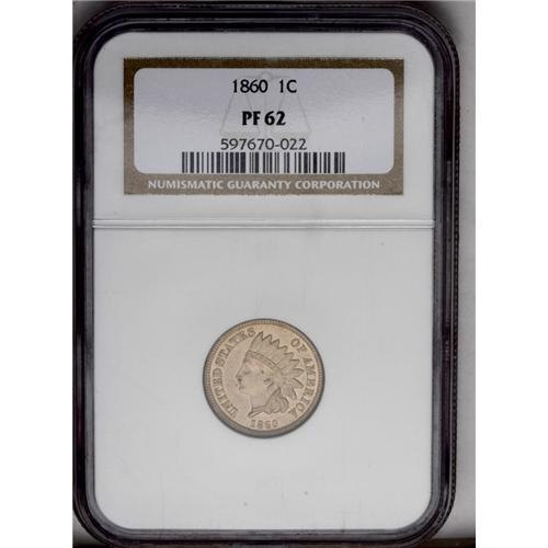 <B>1860<1C> PR62 NGC.</B></I> Sharply struck, including bold definition on all four diamonds, with pleasing light tan color on both sides. A couple of small flecks are noted on each side, the most noticeable occurring in the field just to the left of the Indian's mouth.<BR><I>From The Empire Tree Collection.</B></I>