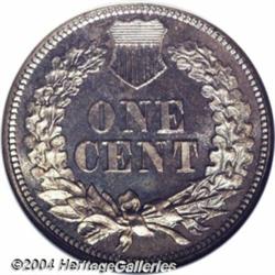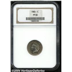 <B>1860<1C> PR65 NGC.</B></I> Struck from the hub style of 1860-1864 with the rounded bust point. Probably no more than 250 pieces were produced with as few as 50 extant today in all grades. This is a bright, nearly white Gem that shows almost no trace of toning over the primarily nickel surfaces. A few scattered planchet flakes are located in the upper left obverse field and there are a few tiny specks of carbon on each side, these being the only surface distractions over the otherwise pristine surfaces. Population: 14 in 65, 9 finer (6/04). <BR><BR><B>Important notice:</B> Heritage usually auctions material at the rate of 200-250 lots per hour. On some occasions eBay Live bid software or the Internet may not be able to keep up with the pace of the auction. We recommend placing a realistic absentee bid now as insurance to avoid disappointment. Occasionally the auctioneer may eliminate or reject an eBay Live bid, and the auctioneer may also reopen a lot after the close of the eBay live bidding (usually because we missed an audience bid), and may reject your bid even if it shows you as the winning bidder. By bidding via eBay Live, you agree that Heritage may award the lot to another bidder at its sole discretion under the circumstances described above or any other reasonable circumstances. Since eBay bids are not shown to us until we open the lot on the floor, we treat those bids just like floor bids. In most cases the floor responds before the eBay bid is presented to us, due to Internet lag time, so for consistency we have made it a policy that floor bids are always considered first over tie eBay live bids. Also please note that all Heritage lots purchased through eBay Live carry a 20% Buyer's Premium. Please make sure you read the Terms and Conditions before you bid. </span></font></tr></table></td></tr></table>