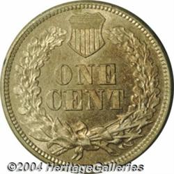 <table><tr><td><table><tr><td>1860 1C PR65 PCGS. Rounded Bust. The total net mintage for the proof 1860 Indian Cent is a mere 542 coins, 250 pieces of which are believed to have been of the Type Two, or Rounded Bust variety (per Snow, 1992). Since the Type Two examples were produced later in the year, more examples may have been melted as unsold than those of the Type One variety. Moderate reflectivity is particularly evident when the present Gem rotates into the light, but the needle sharp striking detail and warm golden-orange color is fully appreciable at all angles. There is no singularly mentionable carbon, and both sides are virtually devoid of handling marks. Housed in an early PCGS holder. Population: 24 in 65, 4 finer (2/04). <BR><BR><B>Important notice:</B> Heritage usually auctions material at the rate of 200-250 lots per hour. On some occasions eBay Live bid software or the Internet may not be able to keep up with the pace of the auction. We recommend placing a realistic absentee bid now as insurance to avoid disappointment. Occasionally the auctioneer may eliminate or reject an eBay Live bid, and the auctioneer may also reopen a lot after the close of the eBay live bidding (usually because we missed an audience bid), and may reject your bid even if it shows you as the winning bidder. By bidding via eBay Live, you agree that Heritage may award the lot to another bidder at its sole discretion under the circumstances described above or any other reasonable circumstances. Since eBay bids are not shown to us until we open the lot on the floor, we treat those bids just like floor bids. In most cases the floor responds before the eBay bid is presented to us, due to Internet lag time, so for consistency we have made it a policy that floor bids are always considered first over tie eBay live bids. Also please note that all Heritage lots purchased through eBay Live carry a 20% Buyer's Premium. Please make sure you read the Terms and Conditions before you bid. <BR><BR><B>IMPORTANT ANNOUNCEMENT ABOUT RESERVES:</B> Heritage now divulges all reserves on its web site 7 days before every auction. If you want to know whether the reserve on this lot has been met, and if not, what the reserve amount is, please visit this lot page on the HeritageCoin.com web site, or email: bid@HeritageGalleries.com </span></font></td></tr></table></td></tr></table>