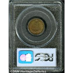 <B>1860<1C> Pointed Bust MS63 PCGS.</B></I> This scarce variety has a sharply pointed tip to the Indian's bust, and was the first variety of the year. This example was sharply struck and has dark tan coloration with underlying gold luster. <BR><BR><B>Important notice:</B> Heritage usually auctions material at the rate of 200-250 lots per hour. On some occasions eBay Live bid software or the Internet may not be able to keep up with the pace of the auction. We recommend placing a realistic absentee bid now as insurance to avoid disappointment. Occasionally the auctioneer may eliminate or reject an eBay Live bid, and the auctioneer may also reopen a lot after the close of the eBay live bidding (usually because we missed an audience bid), and may reject your bid even if it shows you as the winning bidder. By bidding via eBay Live, you agree that Heritage may award the lot to another bidder at its sole discretion under the circumstances described above or any other reasonable circumstances. Since eBay bids are not shown to us until we open the lot on the floor, we treat those bids just like floor bids. In most cases the floor responds before the eBay bid is presented to us, due to Internet lag time, so for consistency we have made it a policy that floor bids are always considered first over tie eBay live bids. Also please note that all Heritage lots purchased through eBay Live carry a 20% Buyer's Premium. Please make sure you read the Terms and Conditions before you bid.