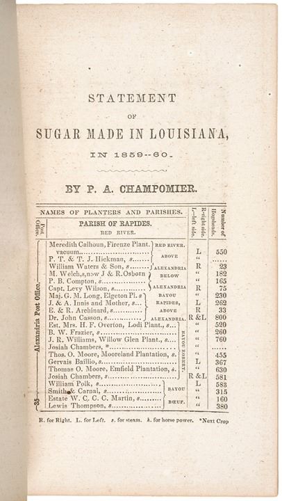 “Statement of the Sugar Crop Made In Louisiana 1859-60”