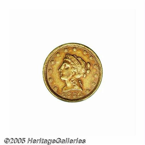 1860 $2 1/2 Clark, Gruber & Co. Quarter Eagle AU5