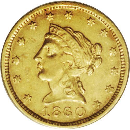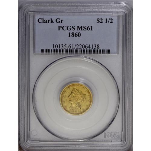 1860 $2 1/2 Clark, Gruber & Co. Quarter Eagle MS61 PCG