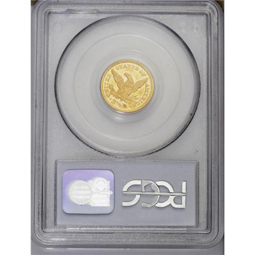 <B>1860<$2 1/2> Old Reverse, Type One AU50 PCGS.</B></I> The 1860 has a low mintage of 22,563 pieces, and most of these are from the Type Two reverse hub. On the Type One design, the lowest arrowhead almost touches the CA in AMERICA. Ample bright luster and no individually obtrusive abrasions confirm the AU grade. The obverse is well struck, while the reverse has typical definition on the eagle's leg, neck, and claws. Population: 1 in 50, 11 finer (3/06). <BR><BR><B>Important notice:</B> Heritage usually auctions material at the rate of 200-250 lots per hour. On some occasions eBay Live bid software or the Internet may not be able to keep up with the pace of the auction. We recommend placing a realistic absentee bid now as insurance to avoid disappointment. Occasionally the auctioneer may eliminate or reject an eBay Live bid, and the auctioneer may also reopen a lot after the close of the eBay live bidding (usually because we missed an audience bid), and may reject your bid even if it shows you as the winning bidder. By bidding via eBay Live, you agree that Heritage may award the lot to another bidder at its sole discretion under the circumstances described above or any other reasonable circumstances. Since eBay bids are not shown to us until we open the lot on the floor, we treat those bids just like floor bids. In most cases the floor responds before the eBay bid is presented to us, due to Internet lag time, so for consistency we have made it a policy that floor bids are always considered first over tie eBay live bids. Also please note that all Heritage lots purchased through eBay Live carry a 20% Buyer's Premium. Please make sure you read the Terms and Conditions before you bid. This lot is being auctioned in conjunction with a live floor auction by Heritage Galleries & Auctioneers. All final auction and invoice information will be supplied by Heritage Galleries & Auctioneers, and all other information should be considered preliminary. Lot:2404 <BR><BR><B>Winning Notification and Billing:</B> After the FINAL session in this auction is complete, Heritage will send e-mail and snail mail invoices. This process normally takes several days. All final auction and invoice information will be supplied by Heritage Galleries & Auctioneers, and all other information should be considered preliminary. <BR><BR>This auction will be conducted on a live auction floor and over the Internet through eBay Live. If you choose to place an absentee bid, please take a moment to <font color='#0000ff'><u><a href='http://pages.ebay.com/liveauctions/help/before/laabsentee.html'>learn how eBay Live absentee bidding works</a></u></font><font color='#000000'>