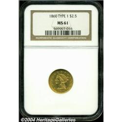 1860 $2 1/2 Old Reverse, Type One MS61 NGC.