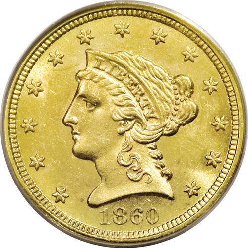 1860 $2 1/2 Old Reverse, Type One MS62 PCGS. According