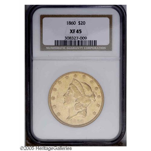 1860 $20 XF45 NGC. A moderately circulated but pleasan 1860[$20] XF45 NGC.
