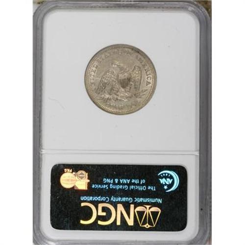<B>1860 25C AU55 NGC.</B></I> NGC Census: (6/61). PCGS Population (9/54). Mintage: 805,400. Numismedia Wsl. Price for NGC/PCGS coin in AU55: $225. (#5451)<BR><BR><B>Coin Engraver:</B> Christian Gobrecht<BR><BR><b>Shipping:</b> Coins & Currency (<a target="_blank" href="http://www.heritageauctions.com/common/shipping.php">view shipping information</a>\)