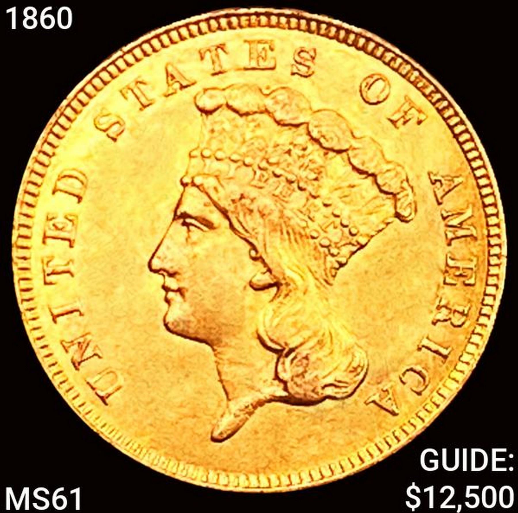 1860 $3 Gold Piece UNCIRCULATED