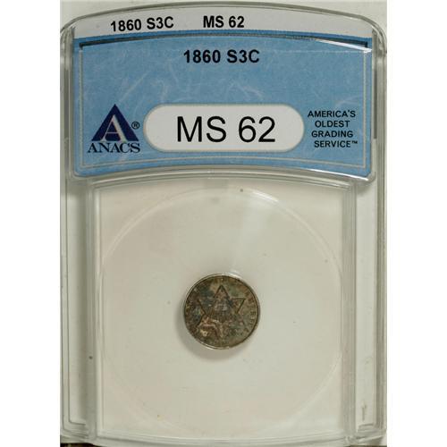 1860 3CS MS62 ANACS. NGC Census: (66/264). PCGS Po