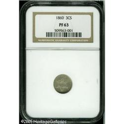 <B>1860 3CS PR63 NGC.</B></I> Boldly struck with a slightly subdued appearance and a few small surface abrasions. Although the original mintage of proofs was 1,000 pieces, few were preserved. Lot:5675