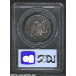 1860 50C PR63 PCGS. Intense electric-blue and golden-brown colors appear when the coin is rotated un