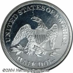 <table><tr><td><table><tr><td>1860 50C PR67 Cameo NGC. A sparkling, Superb Gem presenting a fully brilliant appearance over both sides. All details are boldly struck up (as expected for a proof) and there is a memorable cameo contrast between the deeply reflective fields and nicely frosted devices. For future identification purposes, a squiggly lintmark (as struck) is seen across the eagle's beak and up into the reverse field. <BR><BR><B>Important notice:</B> Heritage usually auctions material at the rate of 200-250 lots per hour. On some occasions eBay Live bid software or the Internet may not be able to keep up with the pace of the auction. We recommend placing a realistic absentee bid now as insurance to avoid disappointment. Occasionally the auctioneer may eliminate or reject an eBay Live bid, and the auctioneer may also reopen a lot after the close of the eBay live bidding (usually because we missed an audience bid), and may reject your bid even if it shows you as the winning bidder. By bidding via eBay Live, you agree that Heritage may award the lot to another bidder at its sole discretion under the circumstances described above or any other reasonable circumstances. Since eBay bids are not shown to us until we open the lot on the floor, we treat those bids just like floor bids. In most cases the floor responds before the eBay bid is presented to us, due to Internet lag time, so for consistency we have made it a policy that floor bids are always considered first over tie eBay live bids. Also please note that all Heritage lots purchased through eBay Live carry a 20% Buyer's Premium. Please make sure you read the Terms and Conditions before you bid. <BR><BR><B>IMPORTANT ANNOUNCEMENT ABOUT RESERVES:</B> Heritage now divulges all reserves on its web site 7 days before every auction. If you want to know whether the reserve on this lot has been met, and if not, what the reserve amount is, please visit this lot page on the HeritageCoin.com web site, or email: bid@HeritageGalleries.com </span></font></td></tr></table></td></tr></table>
