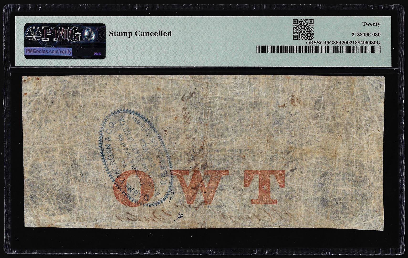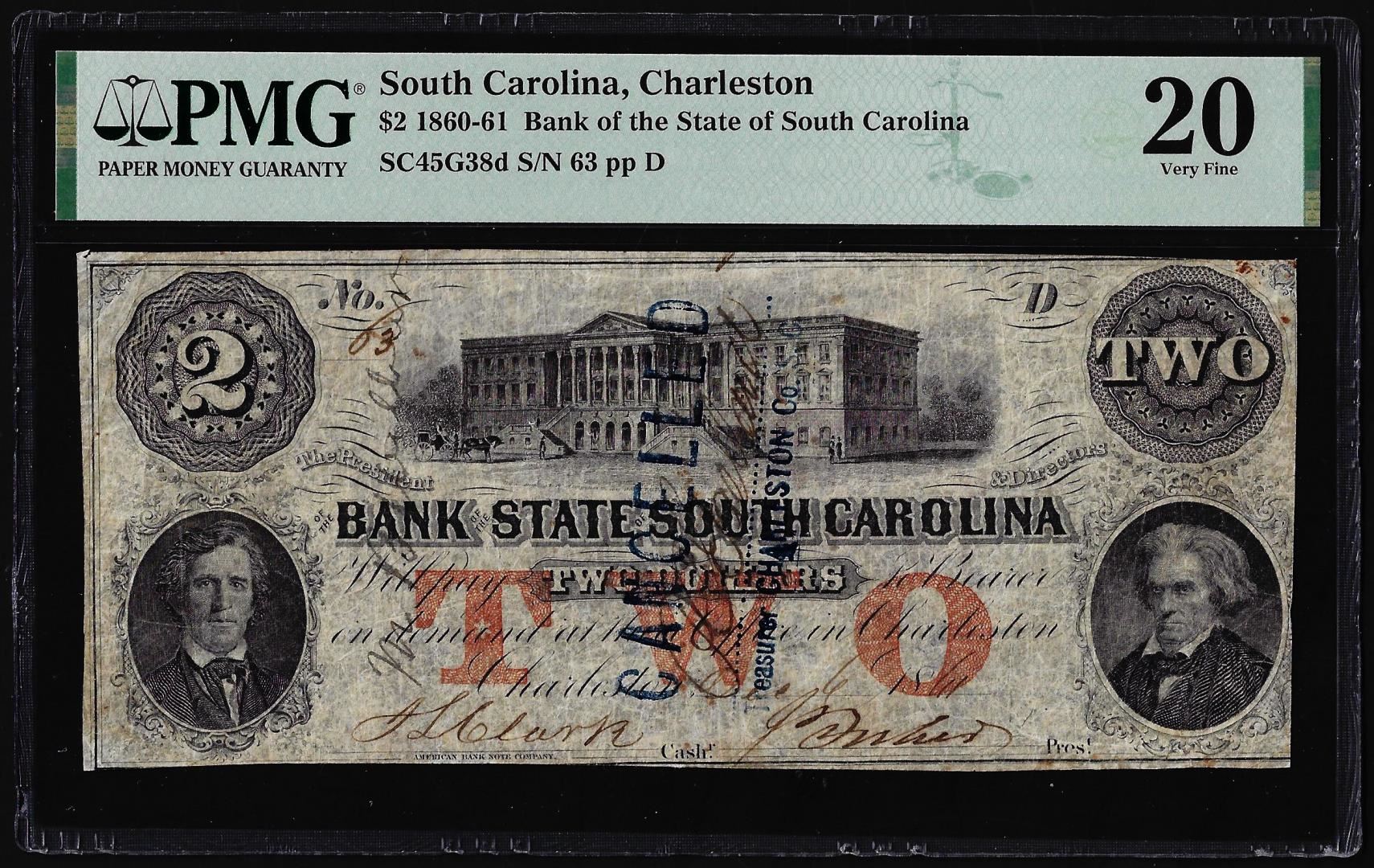 One 1860-61 $5 Bank of the State of South Carolina Obsolete Note SC45G38d PMG Very Fine 20. PMG Certified.