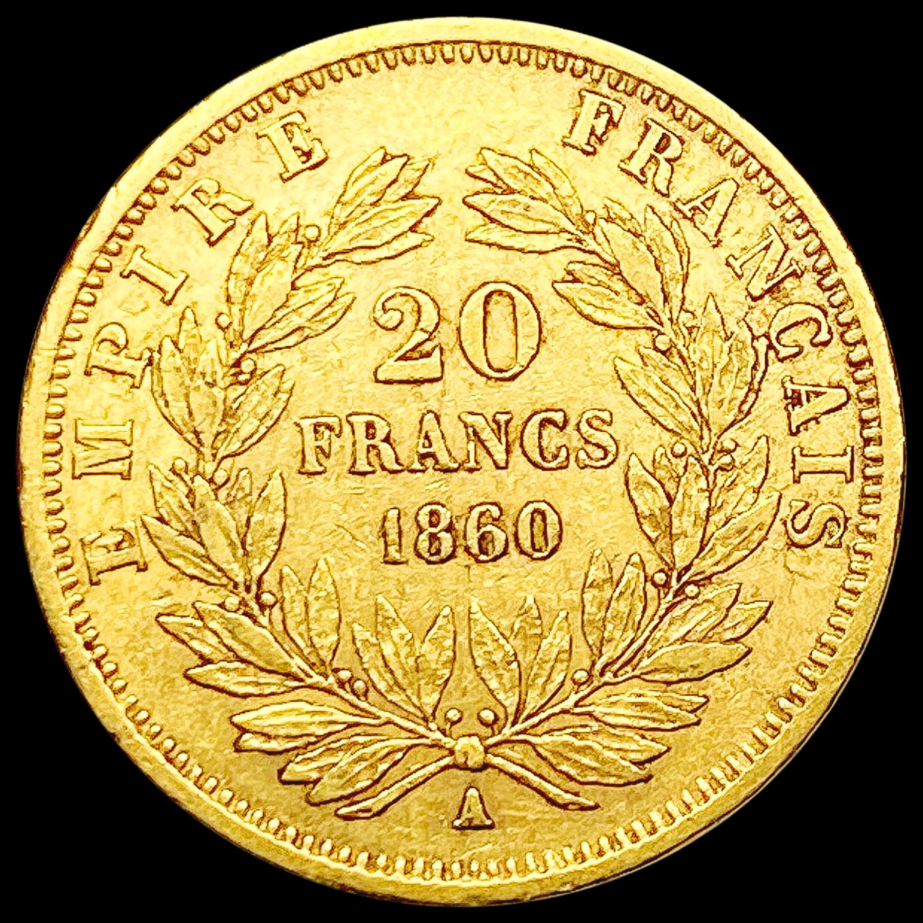 1860-A France Gold 20 Francs 0.1867oz CLOSELY UNCIRCULATED