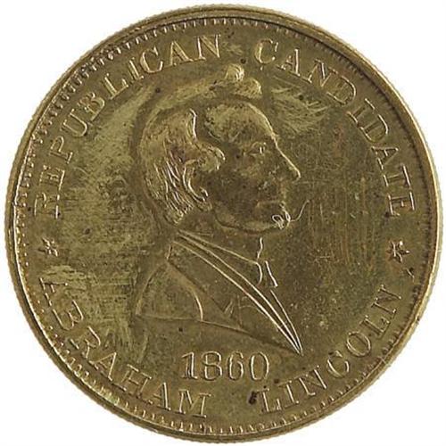 <B>1860 Abraham Lincoln "Republican Candidate" Medalet in Brass.</B></I> Listed as Sullivan-Dewitt AL 1860-43, measuring 28mm. The reverse declares "Liberty Union and Equality" Matching pieces are known for Douglas and Bell. Condition is excellent, aside from some soiling and a few light surface scratches. <BR><BR><BR><b>Shipping:</b> Miscellaneous Collectibles, Smal (<a target="_blank" href="http://www.heritageauctions.com/common/shipping.php">view shipping information</a>)